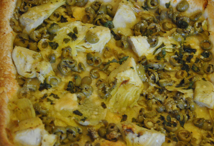 Made on sheets of store bought puff pastry they were baked ahead of time and served at room temperature. Here are the six different toppings: