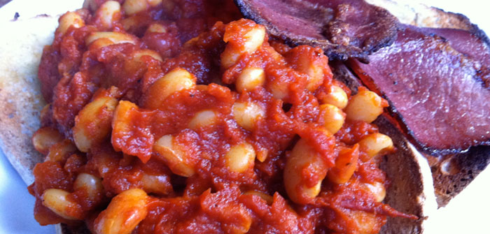 Fried chorizo, eggs, tomatoes and mushrooms on toasted sourdough with parsley garnish