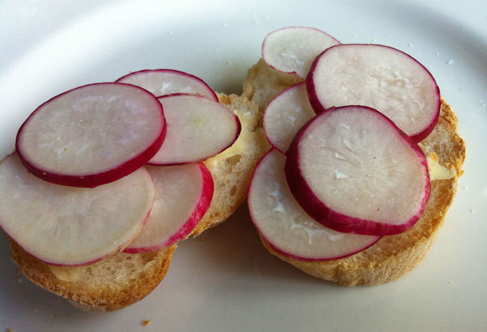 There’s no better way to enjoy radishes plucked fresh from the garden than on buttered white bread with a sprinkling of salt.