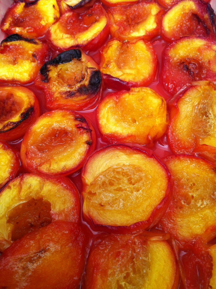 Wash, pit and halve nectarines and lay them into a baking dish. Sprinkle with sugar, perhaps 1-2 teaspoons per nectarine half, drizzle with a little orange blossom water (you will find this at Middle Eastern grocers) and place a small piece of butter into each half. Bake in a moderate oven for 30-45 minutes or until the nectarines begin to colour. Serve warm with thick cream or vanilla ice cream.