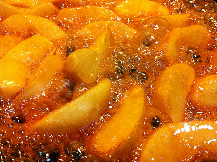 Preheat your oven to 170℃ (340℉). Peel and core 4 apples and cut into wedges. In a large frying pan combine the apples with ½ a cup of honey. Cook over moderate heat until the apples are a little soft and the honey is a little darker. Set aside to cool.