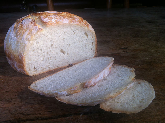 One day before using your sourdough take it out of the fridge. To make 1 cup of starter feed it 120g (4¼ oz) each of flour and warm water. It will rise to double the size and eventually collapse again. When it’s risen or after it collapses add 3 cups of flour, 1 teaspoon of salt and enough warm water to make the dough quite moist without being sticky. Allow it to rise overnight at room temperature (wild yeast doesn’t seem to like too much heat). Place a dutch oven or heavy casserole pot with a lid in the oven and preheat your oven to 200ºC (400ºF). Place the dough onto a floured surface and gently shape it into a ball, making sure the dough is floured all over. Drop it into the hot pot and cook covered for 20 minutes then uncovered for a further 20 minutes. You should have a crusty and delicious bread.