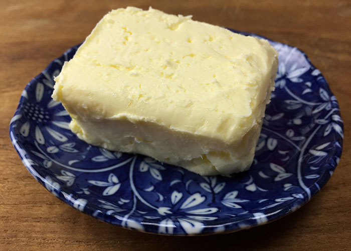 Heat 1200ml (1.2 quarts) of fresh pure cream to 25ºC (77ºF). If you have Flora Danica Culture or Mesophilic Aromatic Type B Culture (I have these for cheesemaking) add a pinch (½ of a ⅛ teaspoon measure) of the culture, mixing well, and allow the cream to culture for 12-24 hours at 20-25ºC (70-77ºF). If you don’t have these cultures you can add 5 tablespoons of mesophilic yoghurt or cultured buttermilk and allow the cream to culture for 12 hours at 23-25ºC (74-77ºF). Whichever method you use, when the cream is cultured put it in the fridge for at least 5 hours to bring it down to approximately 15℃ (60℉) and stop the culturing process. Now pour the cream into a food processor (this is the fastest method but you could also use a stand mixer or put the cream in a jar and shake it) and start the motor. The cream will first become whipped and then break into yellow butter and buttermilk. Continue to process until the butter comes together. Now strain the butter but don’t throw out the buttermilk as it’s delicious. You can drink it plain, put it in a smoothie or bake with it. Place the remaining butter in a bowl and, using iced water and a spatula, wash the remaining buttermilk out of the butter until the water runs clear. There you have it, delicious butter!