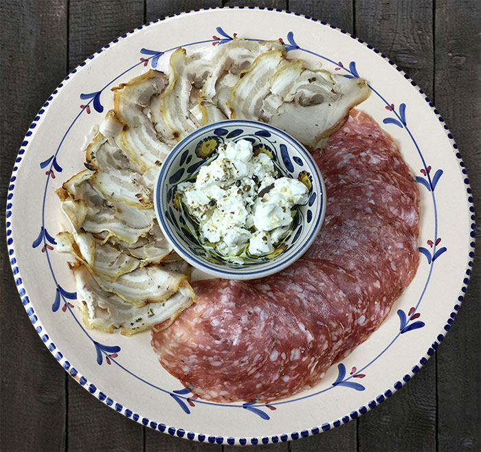 A second platter of antipasti included Porchetta, Casalinga salami and homemade marinated goat’s cheese.