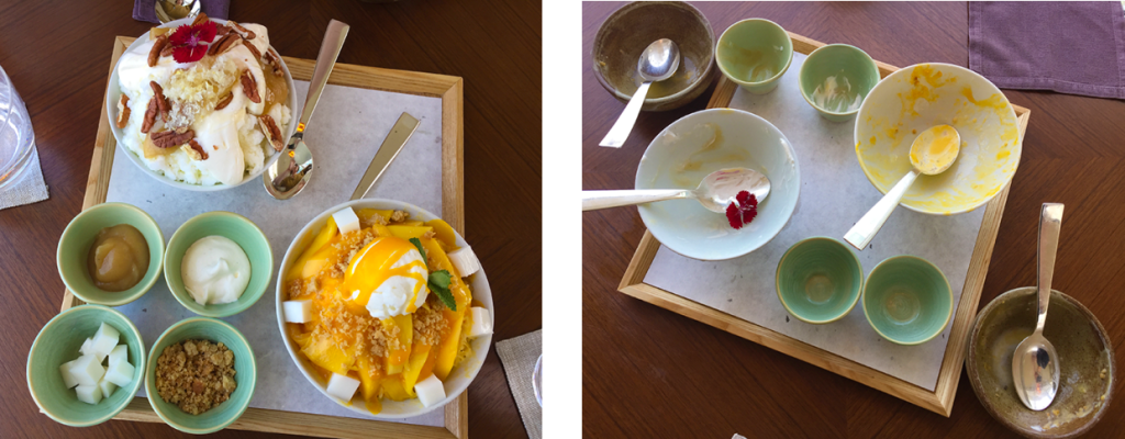 This Korean dessert of shaved ice was traditionally served with only a few ingredients such as red beans, condensed milk, fruit syrup and fresh fruit. Today bingsu is a popular dessert served in specialised restaurants with a myriad variety of ingredients. We enjoyed these two sophisticated versions in The Lounge at the Seoul Park Hyatt.