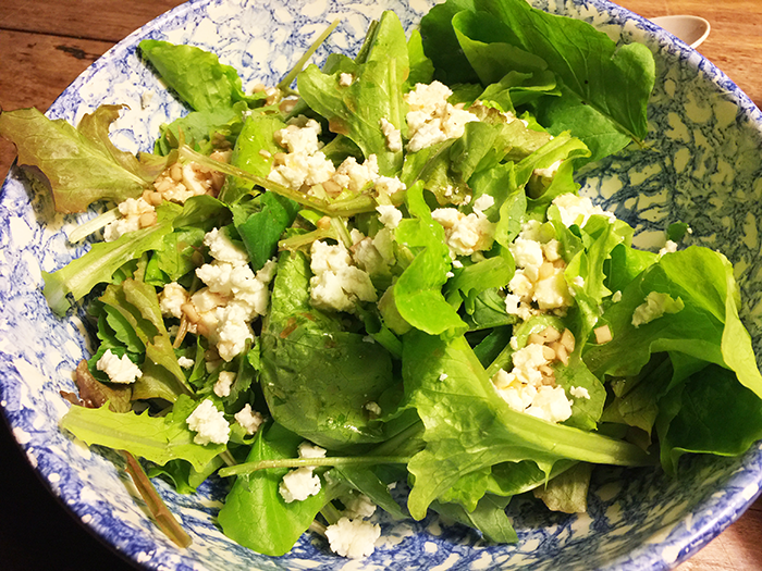 Preheat your oven to 220ºC (425ºF). Cut a chicken into 6-8 pieces (I left the breasts whole as they cook more quickly) and place them in a large bowl. Season well with salt and freshly ground black pepper and add 1 teaspoon each of dried rosemary and oregano, some cayenne pepper to taste, 6 cloves of minced garlic, and ½ a cup each of freshly squeezed lemon juice and olive oil. Peel and quarter 3 large potatoes and add them as well. Mix well to coat everything with the marinade then place the chicken pieces and potatoes into a lightly oiled roasting pan, reserving the marinade. Pour ⅔ of a cup of chicken stock around the chicken and potato pieces then spoon the marinade onto the top of each piece. Roast in the oven until the chicken pieces are golden brown and cooked through, turning in the marinade now and then but leaving the skin side facing up. When the chicken is cooked, remove the chicken pieces to a serving platter. Toss the potatoes in their marinade again. Turn the oven to high or transfer to a grill (broiler) and finish the potatoes until they are golden brown and the marinade is a little caramelised. Remove the potatoes to the platter and deglaze the roasting pan with a little more chicken stock to loosen it. Taste for seasoning and pour it over the chicken and potatoes (you can strain it if you prefer). Serve with a salad of greens and feta with a simple lemon and olive oil dressing.