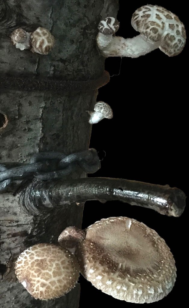 Shiitake mushrooms are used widely in Asian cuisines and considered to have many health benefits. They are widely available in their dried form but are a little harder to find fresh, although Asian stores are a good place to try. We decided to attempt to grow them. This a lengthy procedure with some inherent difficulties for those of us living in urban areas. The first problem was finding living branches from a suitable tree. This took some time but we finally found some fairly large oak branches without any signs of fungus or mould. Shiitake are grown by drilling holes into the branches and hammering in dowels impregnated with the mushroom spores – we ordered these online. The holes are covered with beeswax and the logs then need to be kept damp and in a nice semi-dark place, similar to a forest floor. We waited approximately 18 months before we induced the first crop by soaking the logs for a day and then dropping them to shock them into fruiting. This can be done in Spring, Summer or Autumn. Hopefully they will now fruit twice a year. Although our first crop wasn’t very large it was exciting to finally see the mushrooms growing and they tasted amazing!