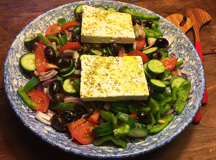 Having just been to Greece, Mary was inspired to make a wonderful greek salad as an accompaniment.