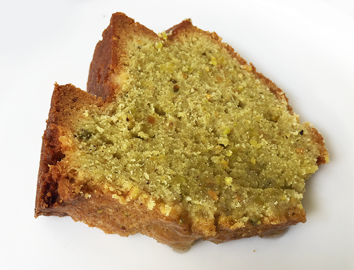 Preheat your oven to 180ºC (350ºF) and generously grease a bundt pan. In a bowl combine 3 cups of flour with ½ a teaspoon of kosher salt. In a food processor pulse 2 cups of shelled and roasted pistachios until they are very fine and stick together when pinched. Now beat 290g (11oz) of butter with 1½ cups of sugar until light and fluffy. Mix in the pistachios, 1 tablespoon of lemon zest and 1 teaspoon of pure vanilla extract then add 4 large eggs, incorporating them one at a time. Finally, mix in the flour and salt alternately with ¼ of a cup of white rum until just combined. Transfer the batter to the prepared tin and bake until the cake tests clean. This might take 60 minutes or more. Cool in the pan for 20 minutes and then finish cooling on a wire rack. In a small saucepan combine ¾ of a cup of sugar, 2 tablespoons of fresh lemon juice, 2 tablespoons of water and a pinch of salt. Simmer over medium heat for a few minutes until the sugar is dissolved then add ½ a teaspoon of pure vanilla extract. Allow to cool a little before brushing onto the cooled cake.
