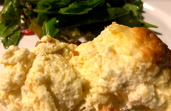It’s been a while since I made a soufflé but a glut of egg whites and this recipe inspired me. My version was adapted for goat cheese and more egg whites and had an excellent light and fluffy texture.
