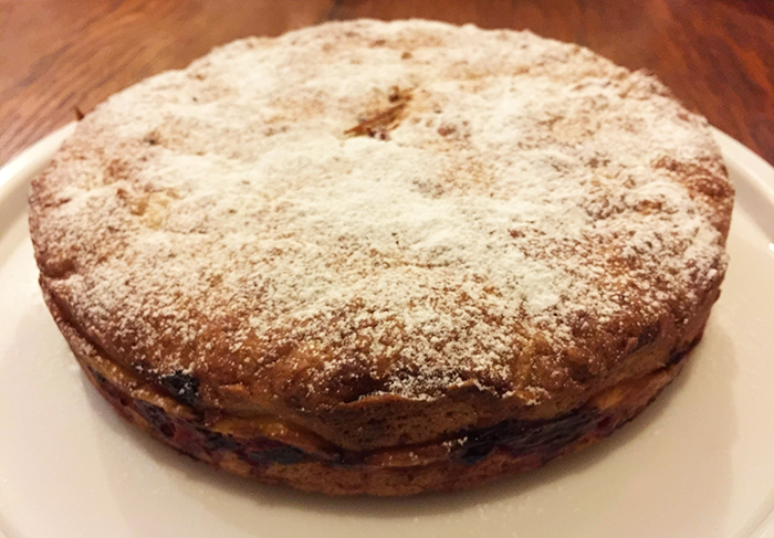 Preheat your oven to 180ºC. Lightly grease a 20cm round cake tin and line with baking paper. Cook 200g rhubarb with 1 tablespoon of caster sugar until soft and a little jammy. Set aside to cool. In a small saucepan combine 1 tablespoon of custard powder, 2 teaspoons of caster sugar, ⅔ of a cup of milk and ½ a teaspoon of pure vanilla essence. Stir and cook until the custard is thick. Set aside to cool. Now beat 75g of butter, ⅓ of a cup of caster sugar and 1 teaspoon of grated orange zest until light and fluffy. Beat in 2 eggs one at a time. Sift together ⅔ of a cup of self-raising flour and ½ a cup of wholemeal self-raising flour. Now stir the sifted flours and ⅓ of a cup of milk into the cake mixture until well combined. To assemble the cake spread ⅔ of the mixture in the prepared cake tin. Place the rhubarb over the cake mix then add the custard. Top with the remaining cake mix and bake for 55 minutes or until a skewer inserted into the cake comes out clean. Allow to cool in the tin for 5 minutes before turning out. When cooled dust with icing sugar and serve with natural yoghurt.