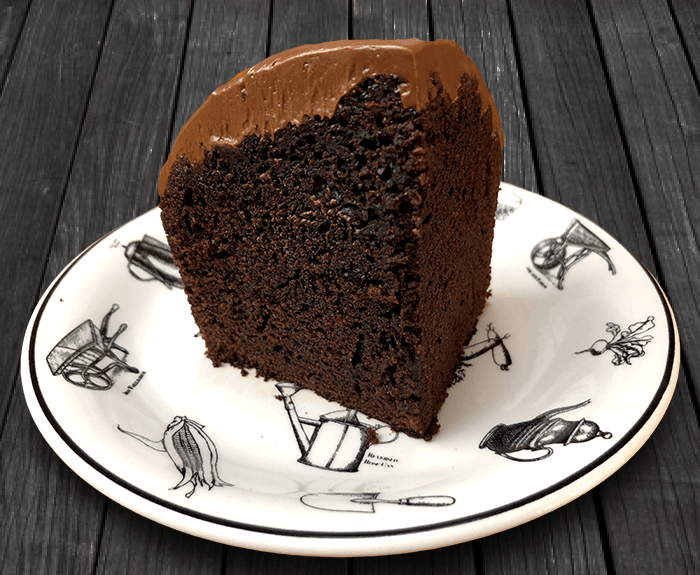 Preheat your oven to 180ºC (375ºF). In a small saucepan combine 6 tablespoons of good cocoa powder, 1 cup of boiling water and 150g (5¼ oz) of butter and heat until the mixture is melted and glossy. Remove from the heat and place in a mixing bowl, the bowl of a stand mixer is ideal if you have one. Measure ½ a cup of milk and pour in 1-2 teaspoons of lemon juice or cider vinegar and set aside to sour. To the mixing bowl add 2 cups of sugar and ¼ of a teaspoon of salt (don’t add this if your butter is salted) and mix to combine. Next add 2 cups of sifted flour and 1½ teaspoons of sifted baking soda and mix again. Now add the soured milk then 2 lightly beaten eggs and 1 teaspoon of vanilla extract. Beat the batter vigorously for at least 2 minutes. The resulting batter will be quite thin. Pour it into a greased cake pan and bake for 40 to 50 minutes or until a toothpick inserted into the centre comes out clean. Cool in the tin before turning out and allow the cake to cool completely before frosting. To make the frosting, melt 70g (2½ oz) of dark chocolate then add 60ml (2 fl oz) of sour cream, 30ml (1 fl oz) of strong coffee and 1 cup of pure icing sugar. Mix well until there are no lumps and adjust with extra sour cream if the mixture is too thick or extra icing sugar if too thin.
