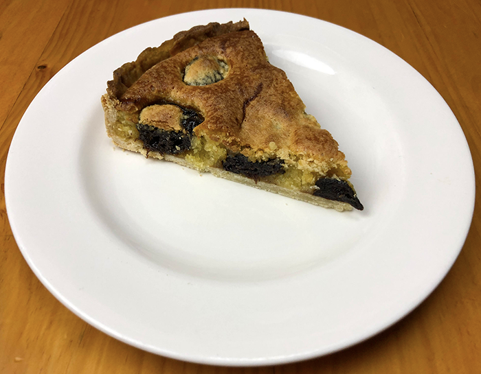 To make the pastry, place 180g (6⅓ oz) of flour in a food processor. Add 100g (3½ oz) of cold butter cut into cubes, 4 teaspoons of caster sugar and a pinch of salt if your butter is unsalted. Process to a fine breadcrumb consistency then, while the machine is still on, add a few teaspoons of cold water, just enough to bring the pastry together. Wrap the pastry and chill it for one hour. When the pastry is chilled, preheat your oven to 200ºC (390ºF). Lightly dust a piece of baking parchment with flour and roll the pastry out on it into a circle large enough for your tart tin. Turn the paper over the tin and press the pastry in to the edges, trimming off any excess around the edges. Place the paper onto the pastry and fill with pastry weights or, if you don’t have any chick peas or rice. Blind bake the pastry for 15 minutes then remove the weights and bake for a further 5 minutes. Meanwhile make the filling. Combine 250g (8¾ oz) of almond meal with ¾ of a cup of sugar, 4 teaspoons of sour cream and 2 eggs. When the pastry is ready, reduce the heat of the oven to 185ºC (365F). Place brandied prunes evenly all over the pastry shell and pour the almond mixture over them. Bake for 20 – 30 minutes until the filling is set and the tart is golden brown. Serve with crème fraîche or sour cream.