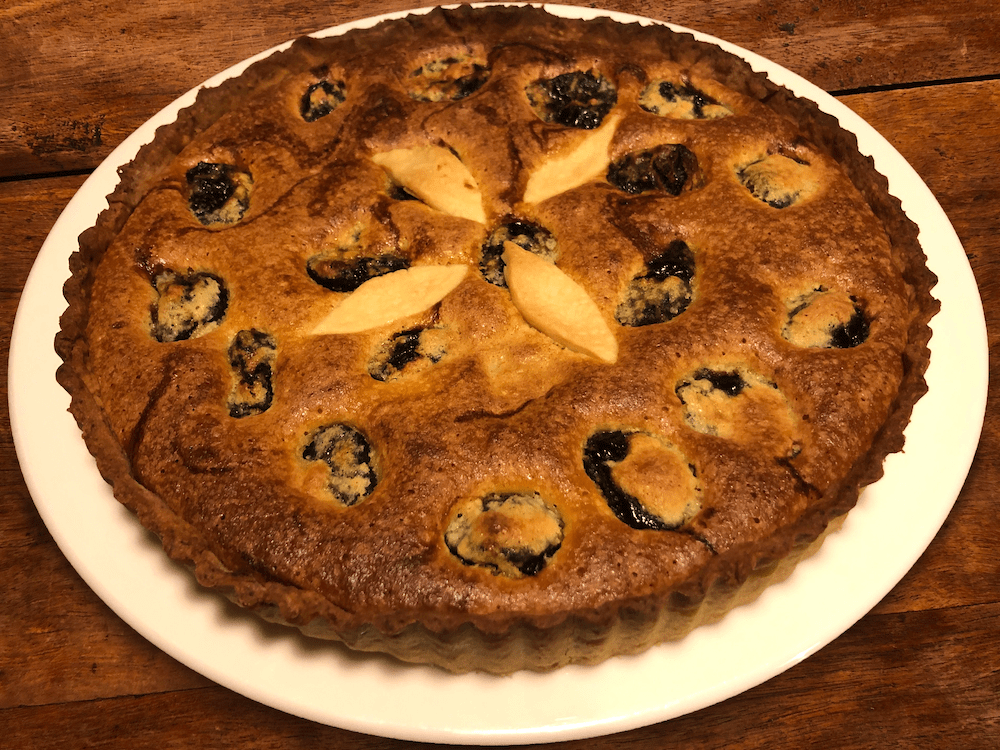 Frangipane is a sweet filling made with almonds. Here it’s paired with brandied prunes in a classic French combination. Soak your prunes in brandy for as long as possible or at least overnight.