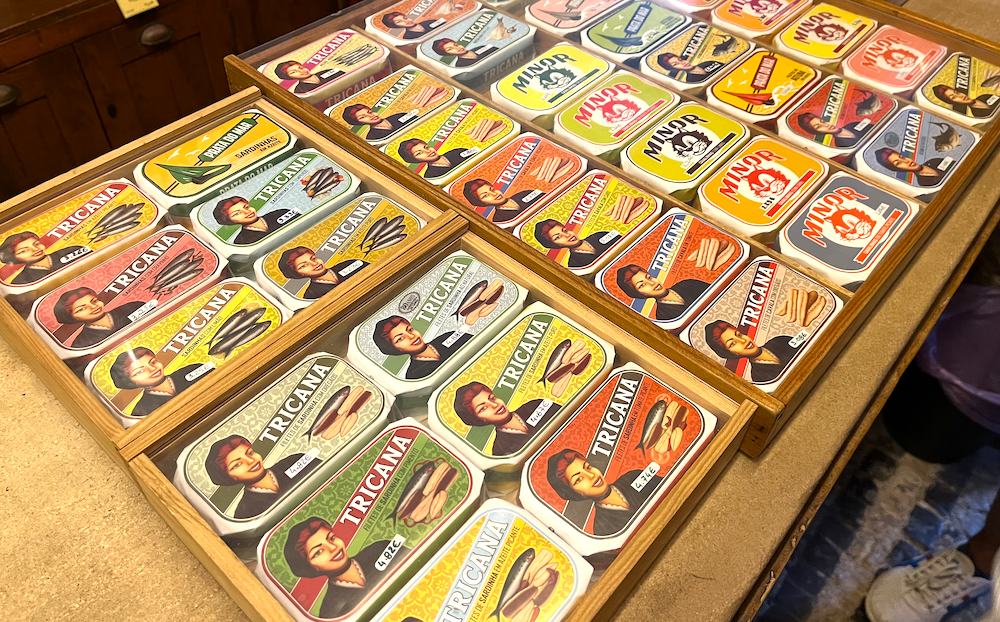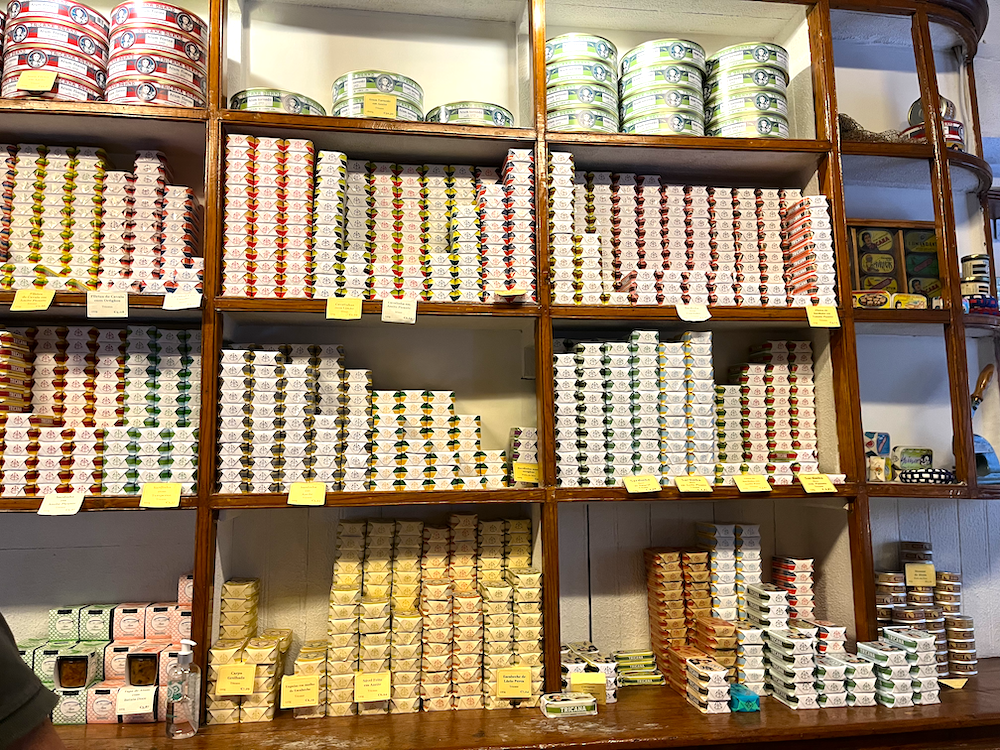 The fish and seafood are often canned the day after they’re caught and the focus is on highlighting texture and flavour. Sardines might be preserved with oil, spice or tomato, mussels in escabeche style, squid in its own ink, and tuna and mackerel in oil. Wrapped in vintage packaging the cans make perfect souvenirs.
