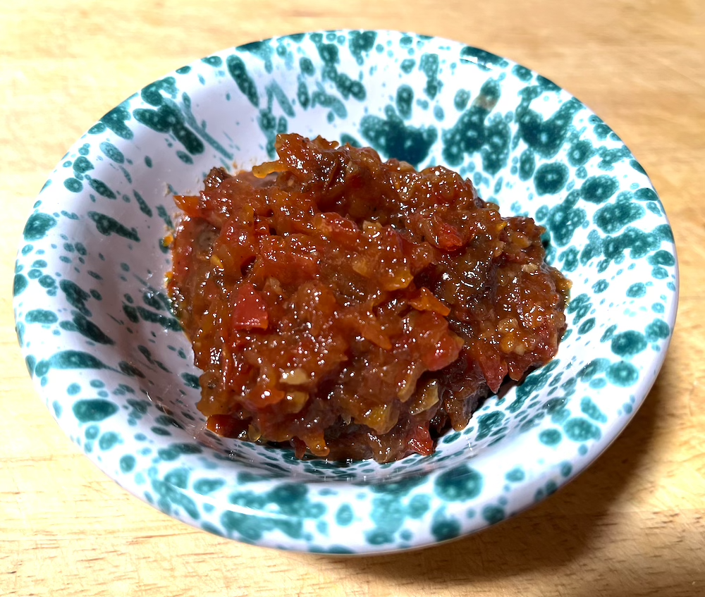 This lovely, sticky, slightly spicy tomato chutney goes with everything!
