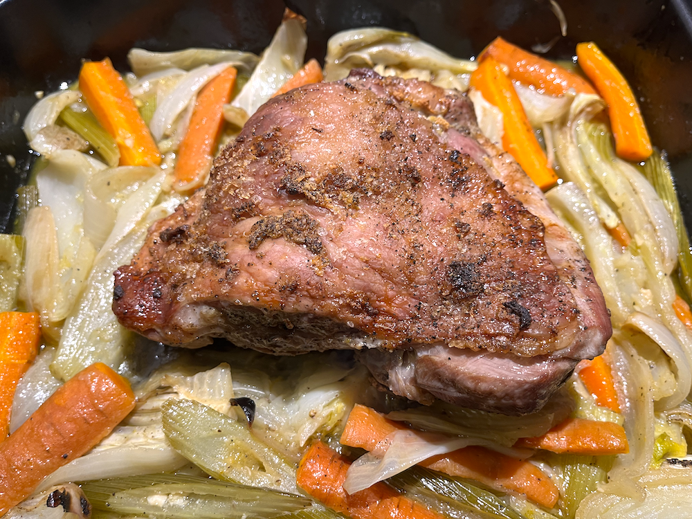 Turkey thigh is a great alternative to cooking the whole bird. It’s big enough to feed 4 and it’s all tasty dark meat (my preference). This one-pot meal combines classic fennel and orange flavours with lavender, a commonly used herb in French cooking. When cooked, lavender loses some of it’s floral notes but be careful not to use too much or it might be reminiscent of soap! If you don’t have any lavender, you can substitute a little rosemary instead as it comes from the same family.