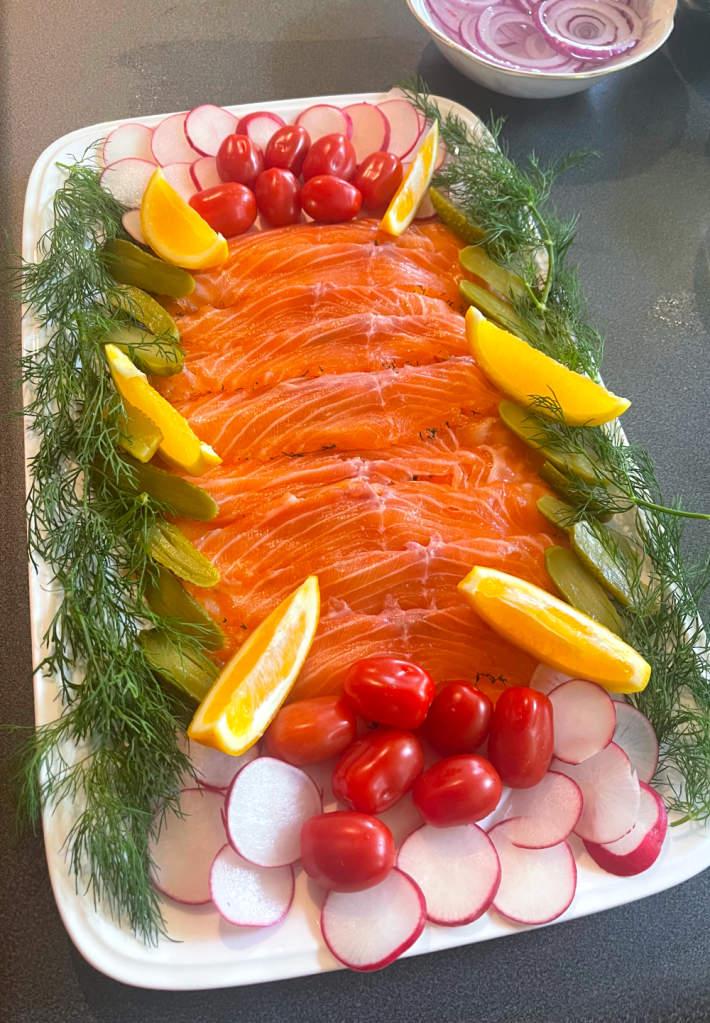Scandinavian gravlax is fresh salmon cured in salt and sugar with dill. Linda made this excellent version from another great recipetineats recipe.