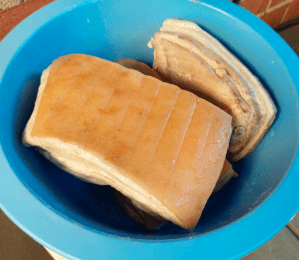 This recipe will make 2 large bowls, or enough for 6 people. Scale up the recipe as desired. This batch was made with 9kg of pork belly!